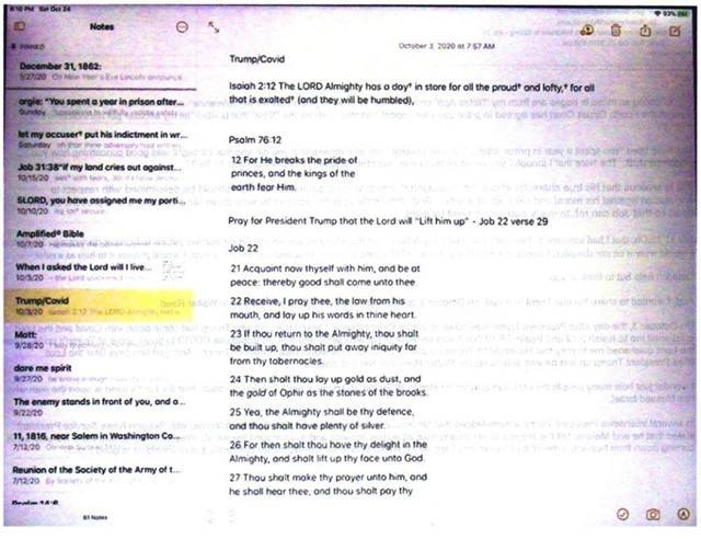 However, before going any further as to the multifaceted aspects of Revelation 3 I want to share the following image from the “Notes” app on my IPAD because the Scriptures the Lord quickened me to have a bearing on President Trump’s present day situation. As you can see, I made the entry into “Notes” on October 3, 2020 – one month before Trump lost the November 3rd election and three months before he was impeached.