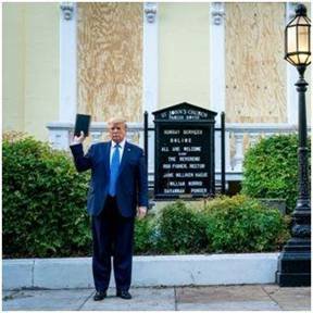 Following is a picture of Trump holding a Bible in front of a Church. Yet, at the same time he will crush people made in God's image. As the Apostle James said, this is not right! |