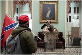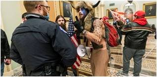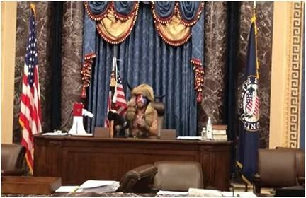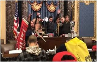 Before leaving what happened inside the Senate Chamber it is well worth noting that the “Most Prominent Symbol” of the insurrection that attempted to overthrow the United States Government was Jacob Chansley a man who identifies himself as a “Shaman”. And, the images of this Shaman chanting in the gallery of the Senate has been seen all around the world. |