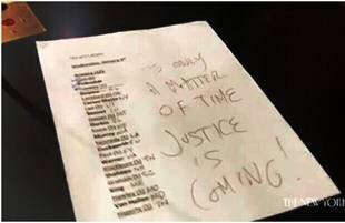 The note reads: “It’s only a matter of time, Justice is Coming!” |