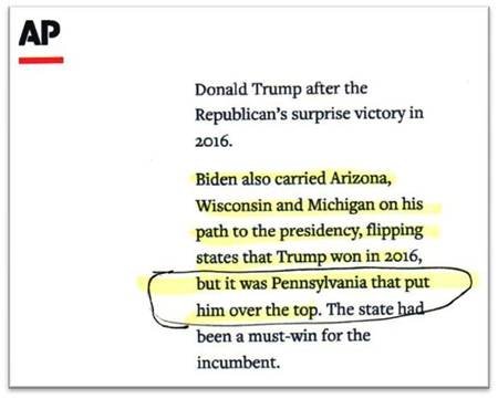 At the time I sent the email to myself, Donald Trump was still ahead of Joe Biden in Pennsylvania. I sent the email to myself at 6:32 a.m. and it wasn’t until 2 hours later at 8:50 a.m. that Biden took the lead in Pennsylvania by about 5,600 votes. And, it wasn’t until 11:25 a.m. on Saturday, November 7 the day after I sent the email to myself that the Associated Press declared that Joe Biden had won the state of Pennsylvania and that his win in Pennsylvania was the state that put Joe Biden over the top.