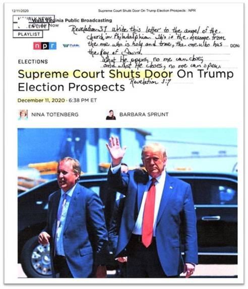 To really understand the profound significance of “Revelation 3:7” in the context of the 2020 Presidential Election it was well worth the time to document the following multifaceted aspects of how Revelation 3:7 unfolded in the natural realm. The January 6, 2021 uprising was only one of President Trump’s attempts to close the door that God opened for Biden and open the door that God closed for Trump.